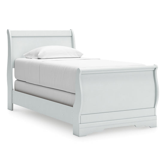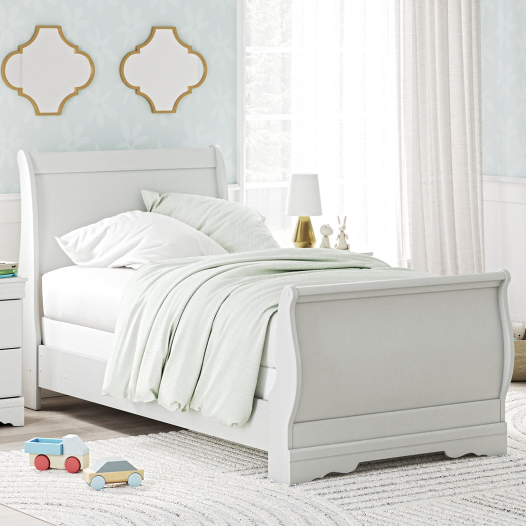 The Anarasia twin sleigh bed's crisp cottage white gives traditional Louis Philippe profiling a delightful style awakening. The look is timeless. The feel? Right at home. Mattress and foundation/box spring available, sold separately.