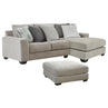 This 2-piece sectional with ottoman delights with deep comfort. It’s casually styled with big, roomy seats and textured chenille upholstery. You’ll find comfort in the plush, reversible cushions. Guests are sure to fight over who will get to relax on the corner chaise because it’s perfect for getting your legs up and spreading out. The decorative pillows in watercolor and fun abstract designs are included for bringing beauty to the look.