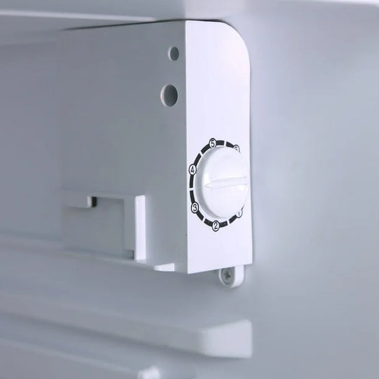 Two (2) Liter Bottle Storage on the Door, Two (2) Removable Wire Shelves, Recessed Door Handle, Reversible Door - Left or Right Swing, Black Cabinet with Stainless Steel Door, Space Saving Flush Back Design, Full Range Temperature Control, Auto Defrost