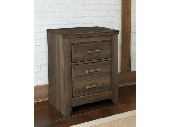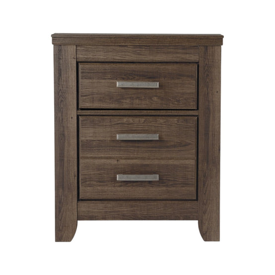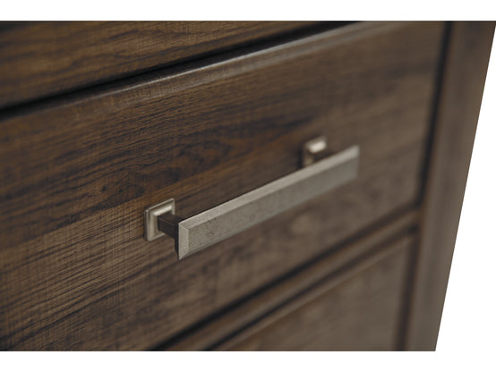 Get the look of posh barn wood without setting foot in a salvage yard. Replicated rough-sawn oak of this nightstand has a vintage finish that is reminiscent of a timeworn family heirloom. Warm, rustic and naturally beautiful, it’s just got that ageless appeal. Sleek hardware in a pewter tone is a snappy finishing touch.