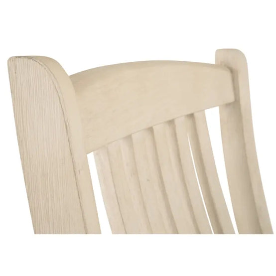 The beauty of this upholstered dining chair is something to savor. Designed to serve up comfort and flair, this rake-back dining chair entices with a cushioned seat covered in a heavy woven fabric that complements the chair’s antiqued white finish.