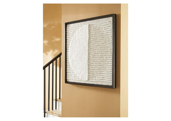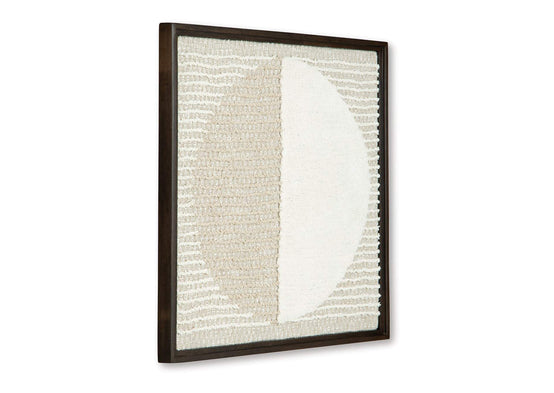 Made with woven fabricWood frame with black finishD-ring bracket for hangingCan hang vertically and horizontally
