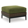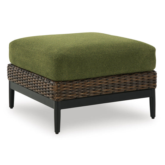 This outdoor ottoman recalls the aesthetics of nature to bring an inviting, high-style feel to your patio or lanai. Its Nuvella+™ performance fabric is made with enhanced UV resistance, so the chic green hue stays brighter for longer. Worried about the weather? Don't sweat it—the durable resin wicker withstands the elements from season to season.