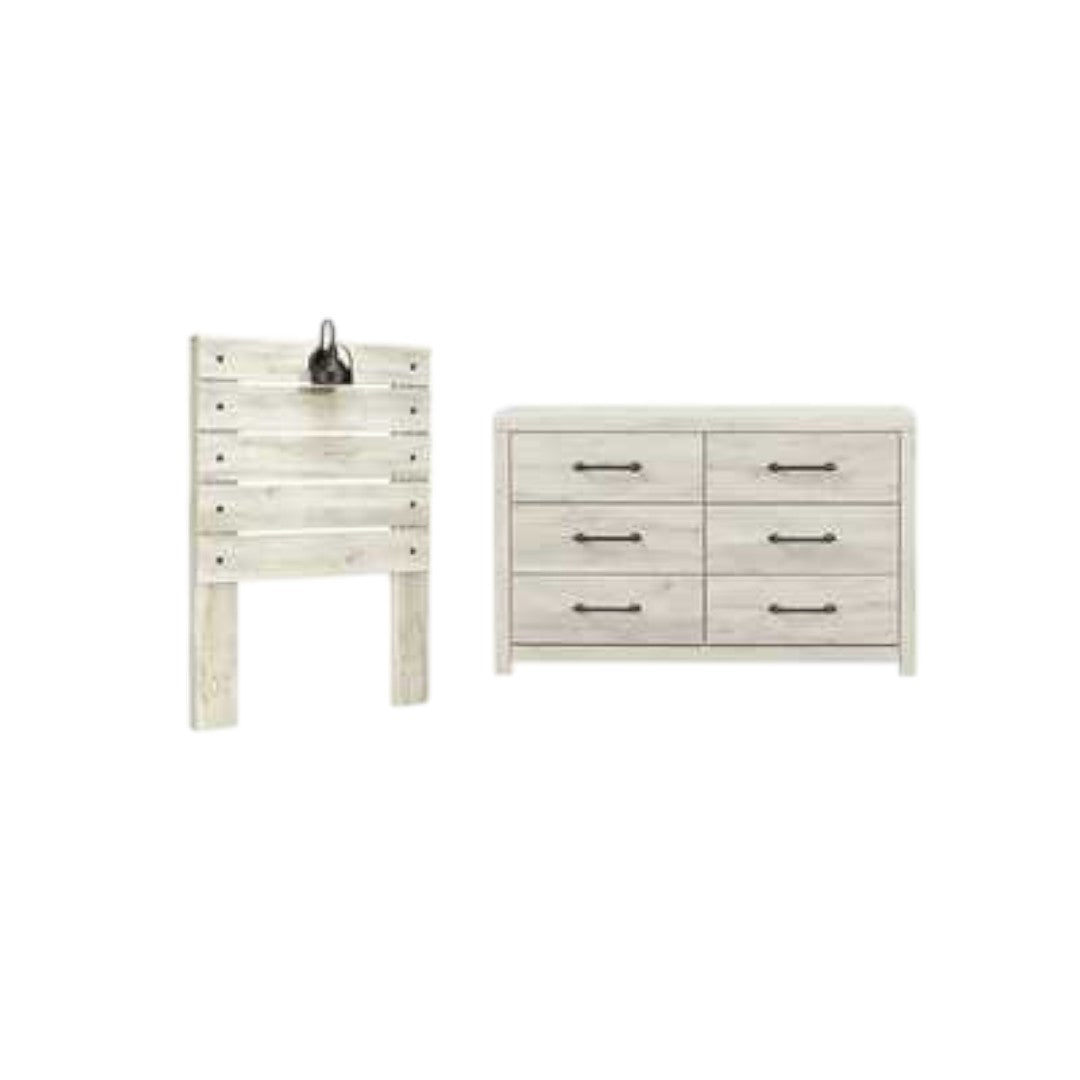 Whether you lean towards modern loft or modern farmhouse, this panel headboard and dresser tip the balance in your favor. The wispy whitewash finish enhances the style without covering the grain for that weathered look you just can’t get enough of. Love to read in bed? You’re sure to find the retro-chic light sconces and USB plug-ins on the open-slat style headboard to be a totally bright idea, while the elongated metal drawer pulls on the dresser really elevate the aesthetic. What a delightful take on rustic industrial style.