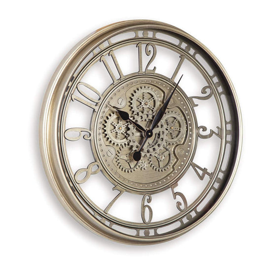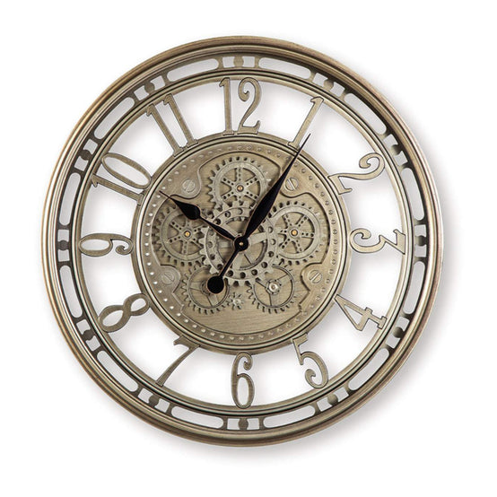 Gear up for greatness with this vintage-inspired wall clock. A champagne finish adds a touch of elegance, while the intricate moving gears offer a glimpse into the inner workings of time. It may look old, but it still runs like clockwork.