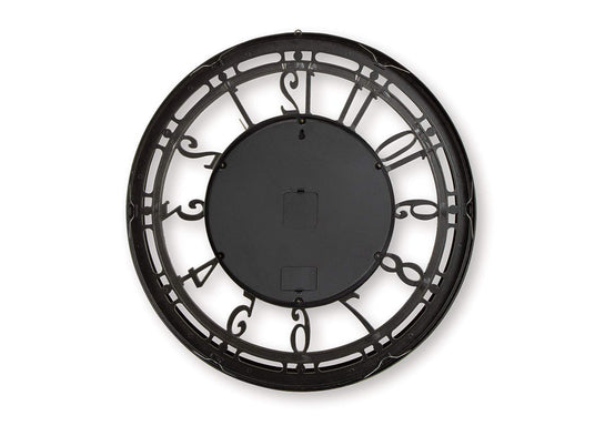Made with metal and clear glassChampagne finishMoving gearsKeyhole bracket for hangingRequires 3 AA batteries (not included)