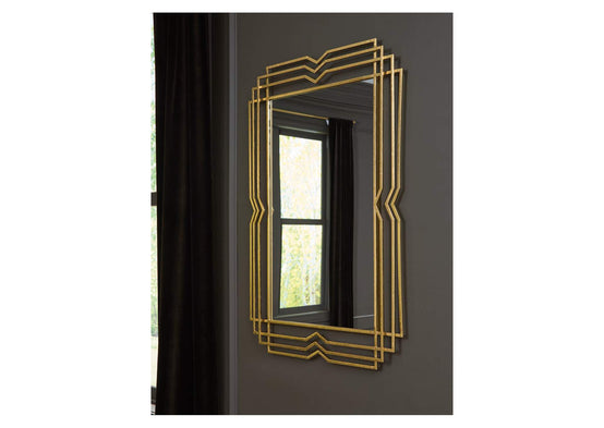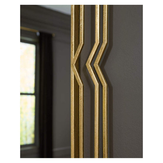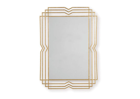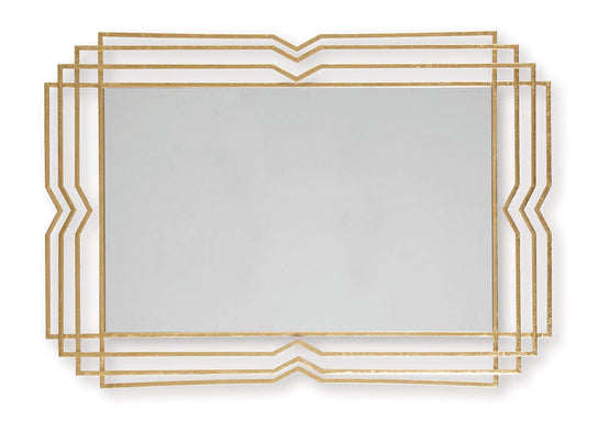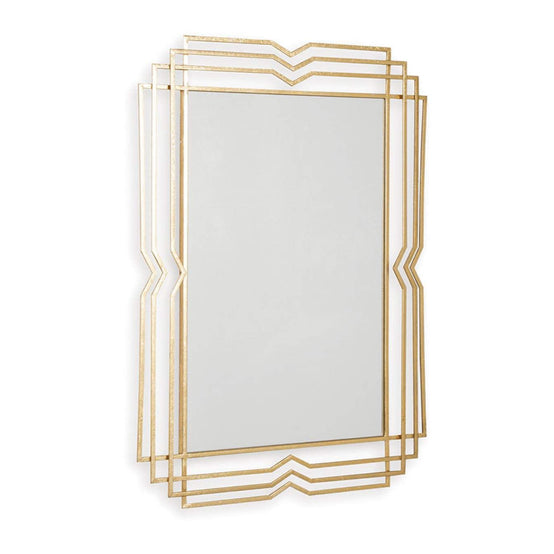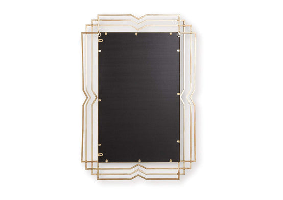 This eye-catching accent mirror elevates your home decor with its modern geometric design and glamorous gold foil finish. It's a stunning statement piece for an entryway, living room or bedroom, adding a touch of sophistication to brighten up your space.