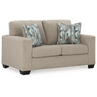 Corner-blocked frameAttached backs and loose seat cushionsHigh-quality foam cushions wrapped in poly fiberAccent pillows includedPillows with soft polyfillPolyester upholsteryExposed feet with faux wood finishPlatform foundation system resists sagging 3x better than spring system after 20,000 testing cycles by providing more even supportSmooth platform foundation maintains tight, wrinkle-free look without dips or sags that can occur over time with sinuous spring foundations.