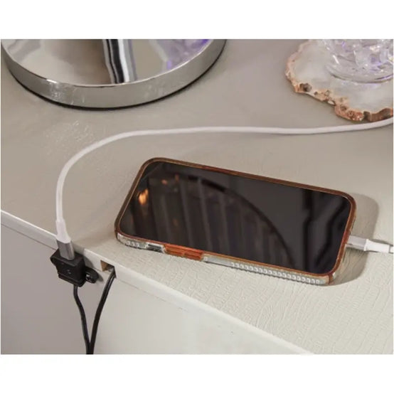 Bright, bold luxury. This nightstand dazzles with its attention to detail. Your love of glamorous style is reflected in its all-over faux gator in a metallic finish, exquisitely paired with faceted chrome-tone details. Complete with wireless and USB charging, it inspires you to live luxuriously every day—whether you're charging up to go out or scrolling on socials before bed.