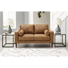 Small-scale style, tailored to perfection. This loveseat echoes retro aesthetics with warm caramel faux leather, while its ultra-linear silhouette incorporates a contemporary edge. Versatile in form and function, the seat suits styles from modern boho to transitional. And its size helps you to confidently curate your compact space without sacrificing comfort (or your budget).