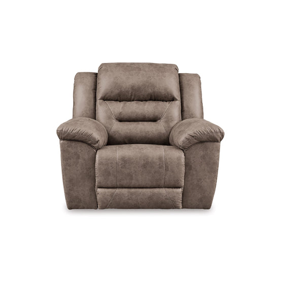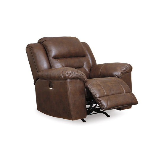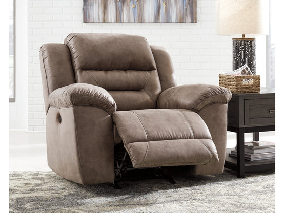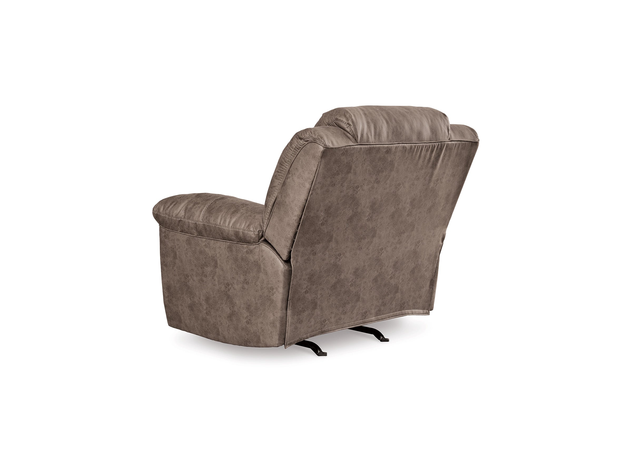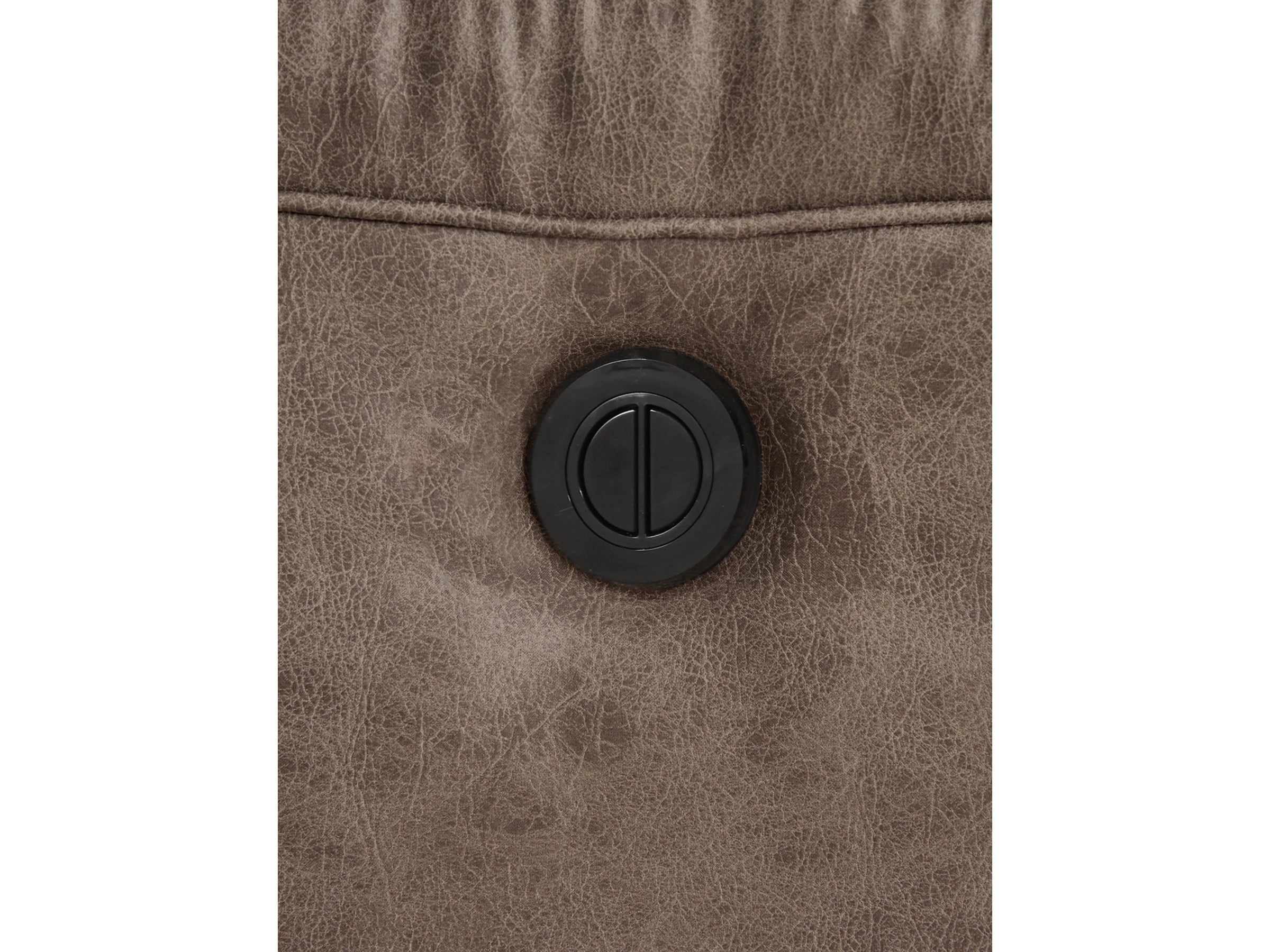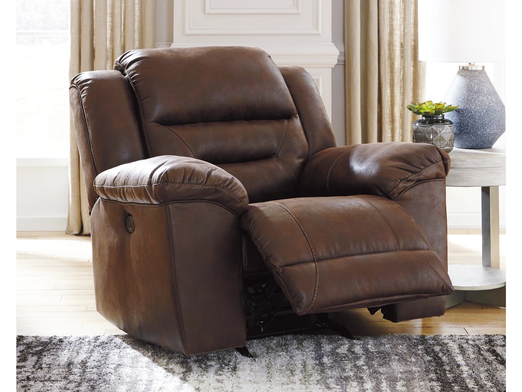 For those who love the cool look of leather but long for the warm feel of fabric, this power rocker recliner delivers both with ease. Its high-performance padded faux leather is remarkably durable and easy to clean, making it just the thing for family spaces. When it’s time to relax, the one-touch power control puts the perfect position at your fingertips. Channel-stitched back cushions provide indulgent lumbar support for maximum seating comfort—not to mention fashion-forward flair.