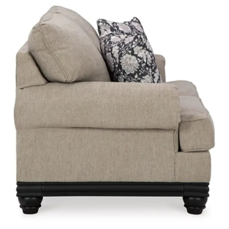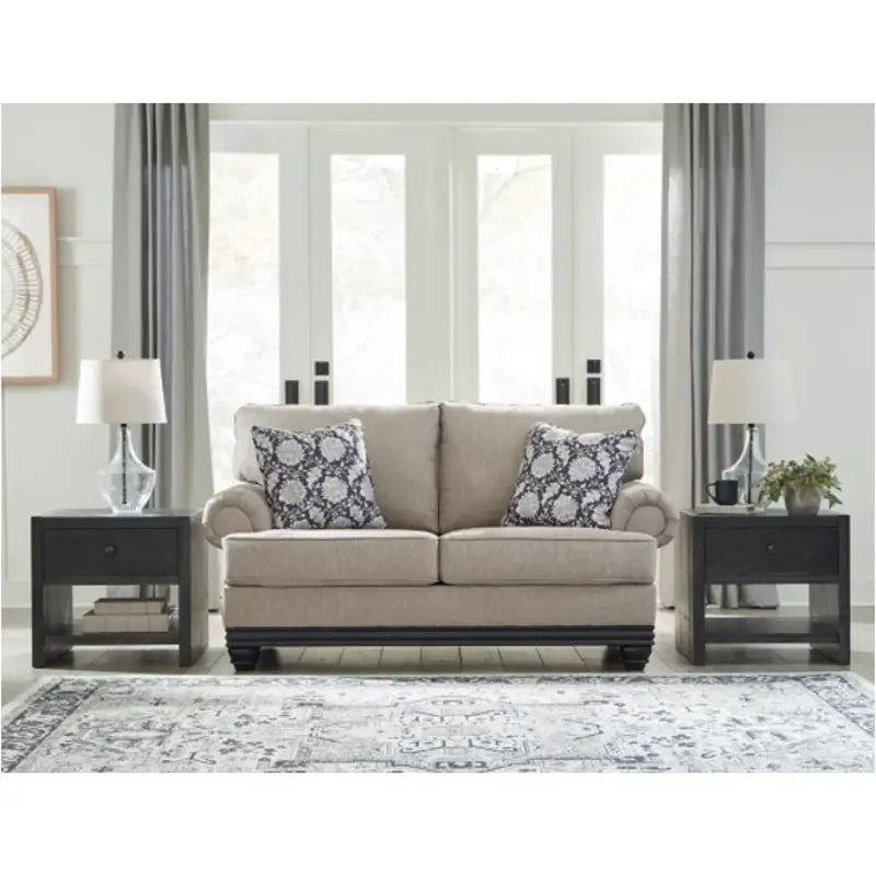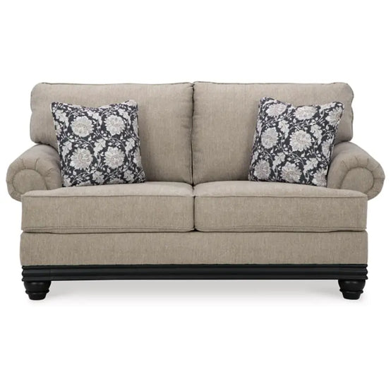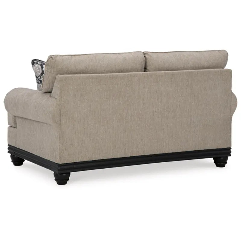 This loveseat suits those searching for a fresh take on versatile style, seamlessly transitioning from casual to modern with your decor. Its flexible character comes courtesy of a chunky fabric. Matte black wood trim creates innovative contrast. A virtuoso of form and function, this loveseat is a superb addition to your simply sophisticated seating arrangement.