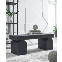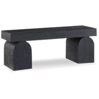 The solid craftsmanship and contemporary style of this bench make it the perfect accent piece in your modern living room, home office or entryway. Its lightly sandblasted effect exudes a decidedly on-trend vibe. Oversized decorative legs add an upscale art gallery quality.