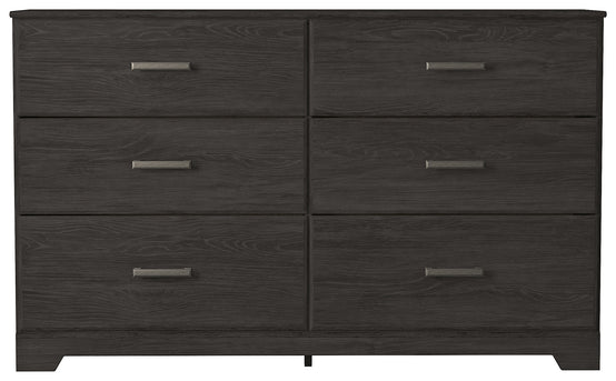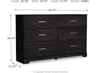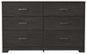 Made of engineered wood (MDF/particleboard) and decorative laminateDark charcoal finish over replicated oak grain with authentic touch6 smooth-gliding drawersAntiqued dark pewter-tone handlesMirror attaches to back of dresserSafety is a top priority, clothing storage units are designed to meet the most current standard for stability, ASTM F 2057 (ASTM International)Drawers extend out to accommodate maximum access to drawer interior while maintaining safetyAssembly requiredEstimated Assembly Time: 20 Minutes