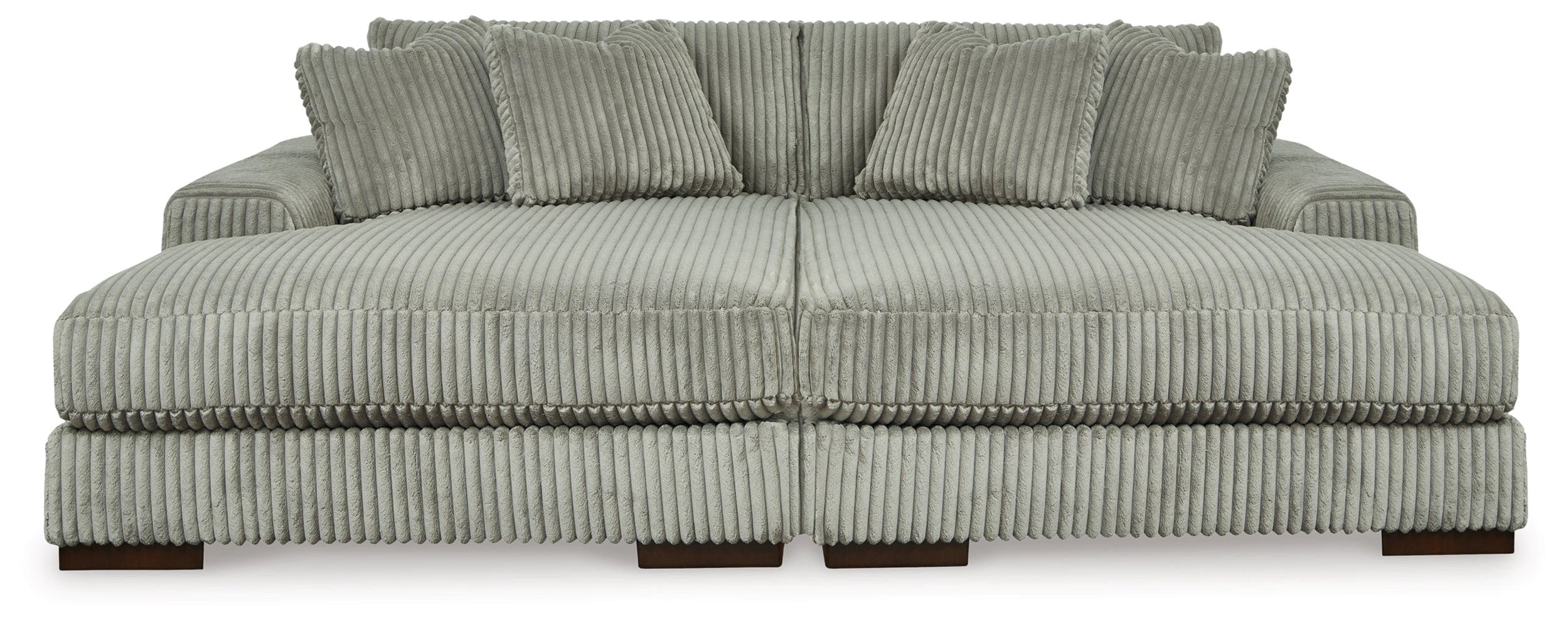 Plush and posh. Showcase your eye for on-trend texture with the statement-making cord upholstery of this double-chaise sectional. Its stunningly soft fabric entices in an ivory hue, complementing contemporary color palettes. Sink into the cushions and plan to stay a while—this cozy living room centerpiece highlights your high-end approach to comfort and style.