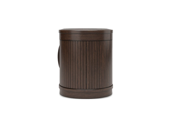 Made of hardwood solids and veneer with MDF substrateWarm brown wood-tone finish2 half round door cabinets, each with adjustable shelfRight-side cabinet includes cutouts for cord management and ventilation for use with a CPUOpen raceway for power cord management located under the topAssembly requiredEstimated Assembly Time: 15 Minutes