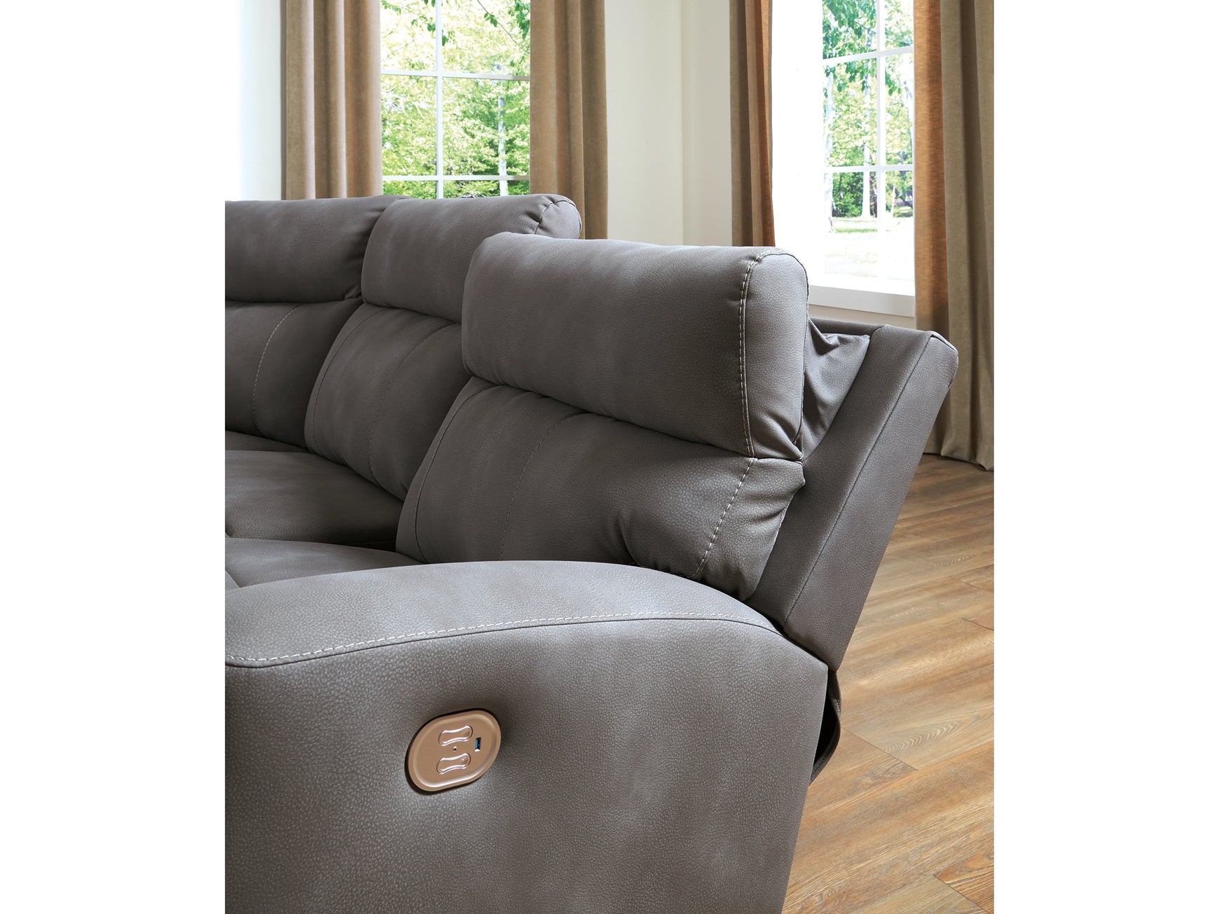 Stylish, adaptable and durable. Your living room is the central hub of your home—why settle for anything less? With this power reclining sectional, you can make everyday lounging effortless. A modular design gives you the flexibility to rearrange and refresh your space as you please. Clean up spills with ease thanks to a faux leather that’s as beautiful as it is functional. And when it comes to relaxation, keep your comfort a priority with seamless one-touch reclining and adjustable headrests.