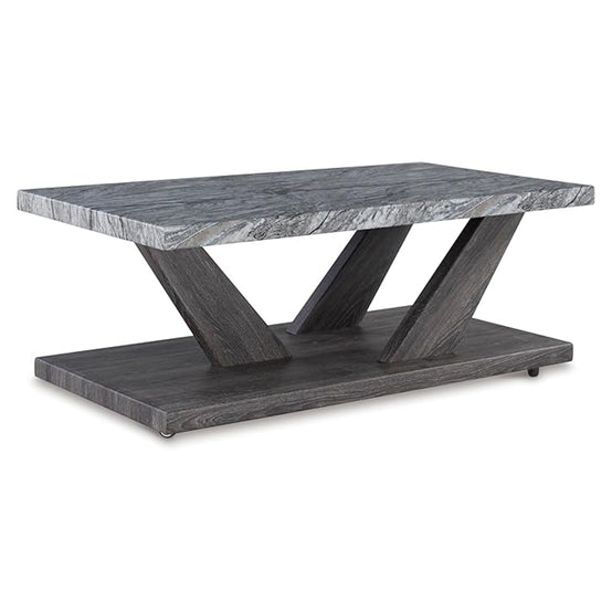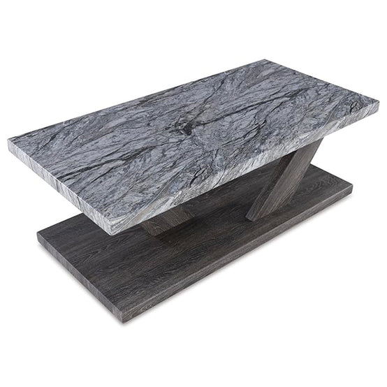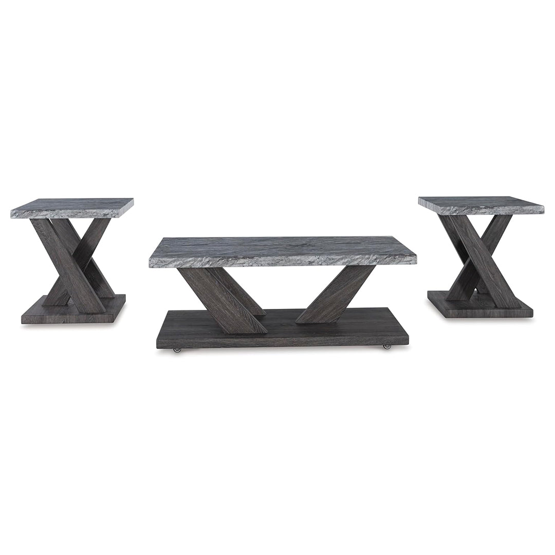 Live in luxurious harmony (without breaking the bank) when you stage the Bensonale table set in your seating area. Dynamic weathered gray bases act as the foundation for faux gray marble tops. Très chic. Your contemporary living room has never been so stylishly coordinated. And for must-have function, the coffee table's built-in casters have you covered.
