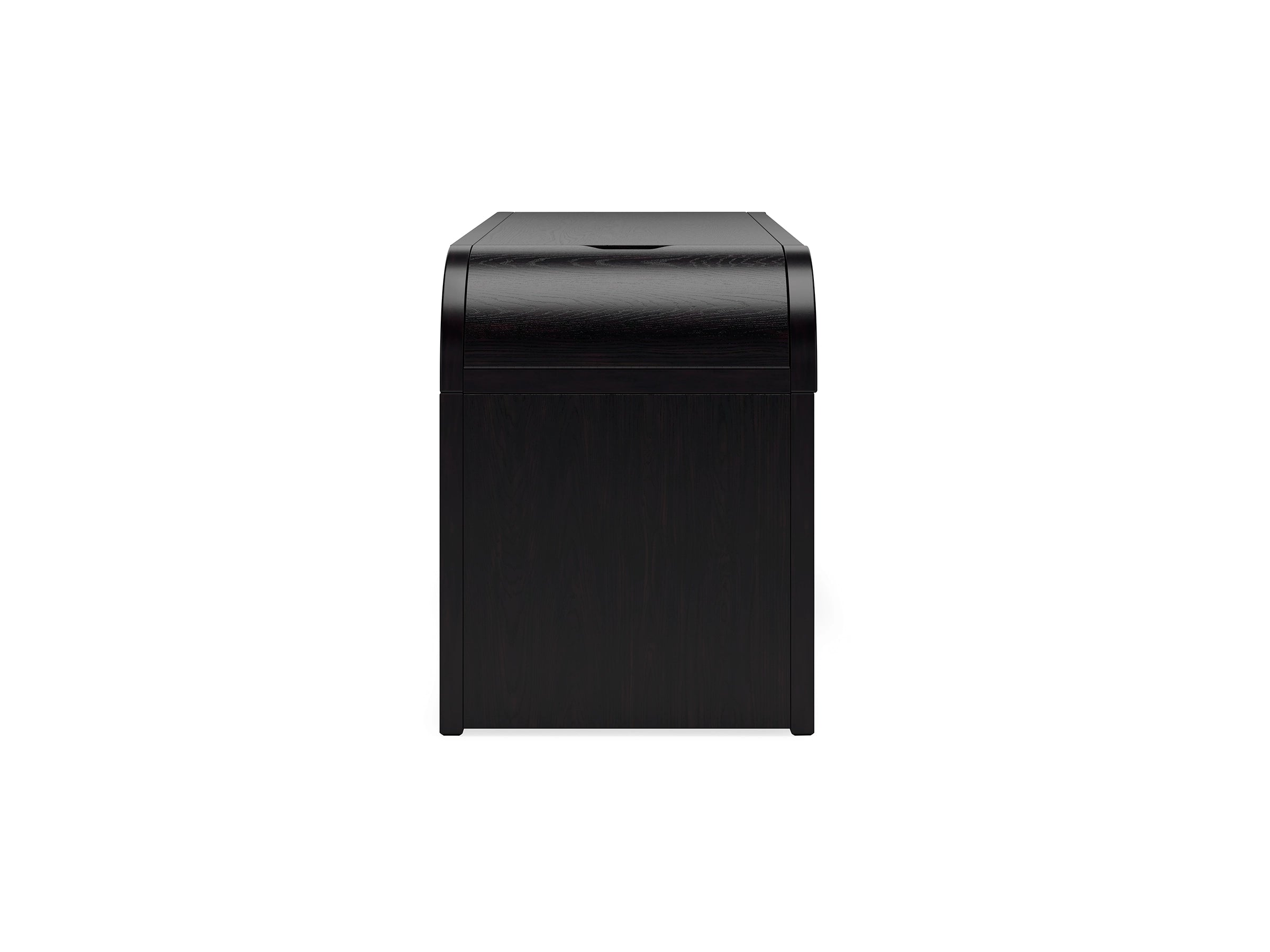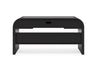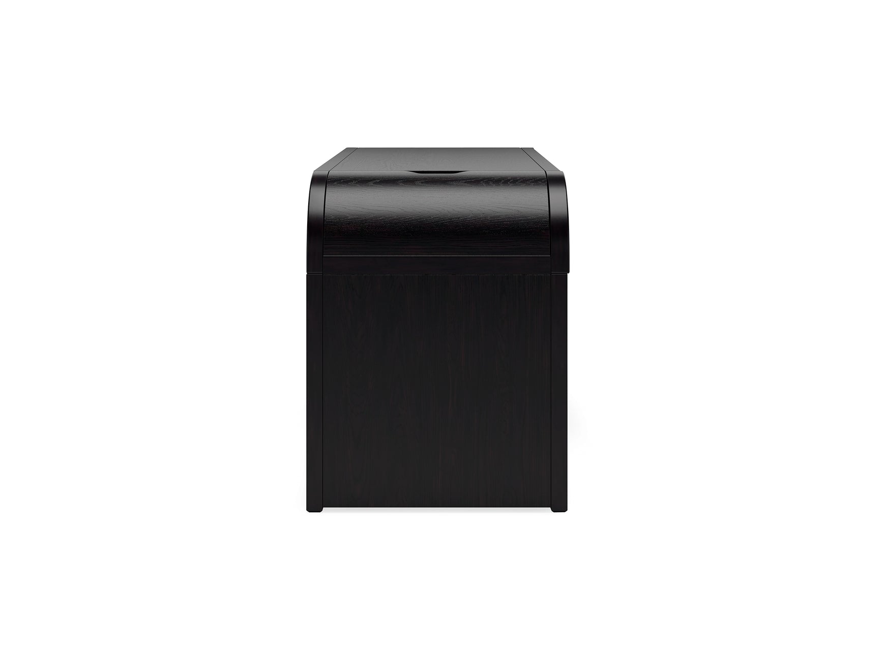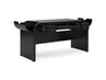 Made with hardwood solids, oak veneer and MDF substrateBlack finish on textured wood grain surfaceBurnished nickel-tone pulls2 small smooth-gliding drawers with fully finished interior, dovetail construction and ball-bearing side glides2 utility binsPull-out keyboard trayTray for cord management110V power supply with USB-A and USB-C charging portsPower cord included; UL ListedAssembly requiredEstimated Assembly Time: 30 Minutes