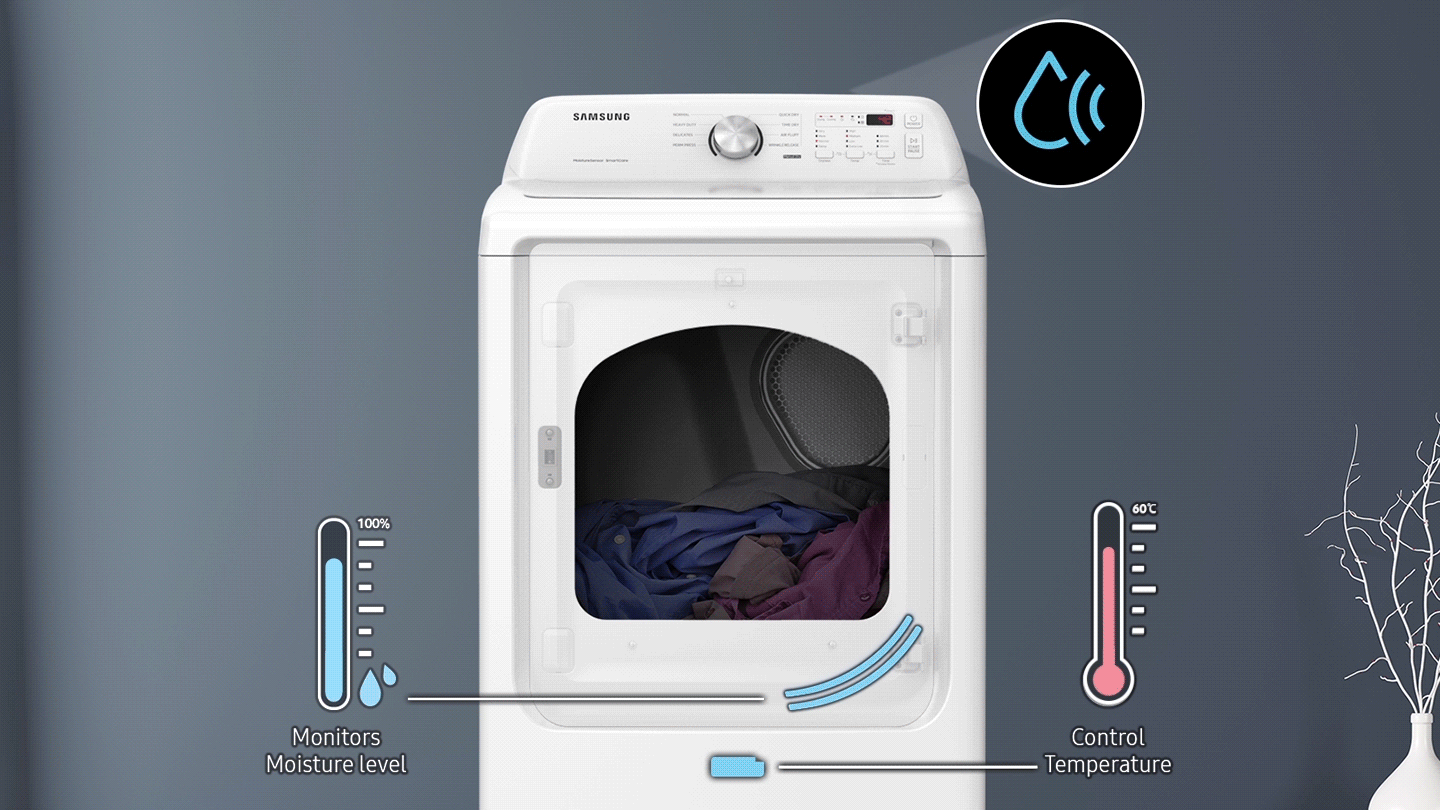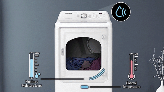 Automatically optimizes the time and temperature of your drying cycle to protect your clothes from heat damage, while avoiding excess energy use.*