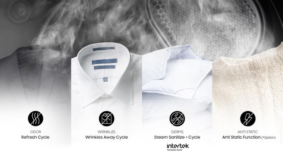 The Steam Sanitize+ cycle removes 99.9% of germs and bacteria, over 95% of pollen, and kills 100% of dust mites.* Multi-Steam Technology steams away wrinkles, odors, and static.