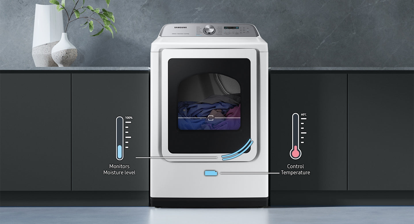 Automatically optimizes the time and temperature of your drying cycle to protect your clothes from heat damage, while avoiding excess energy use.*