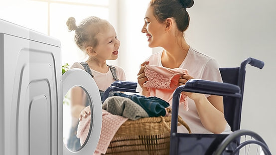 With a Samsung Riser,* your washer or dryer is compliant with the Americans with Disabilities Act (ADA), making loading and unloading much easier. Also aiding the visually and hearing impaired, audio assistance plays a different sound for each option and braille is next to key control panel buttons.