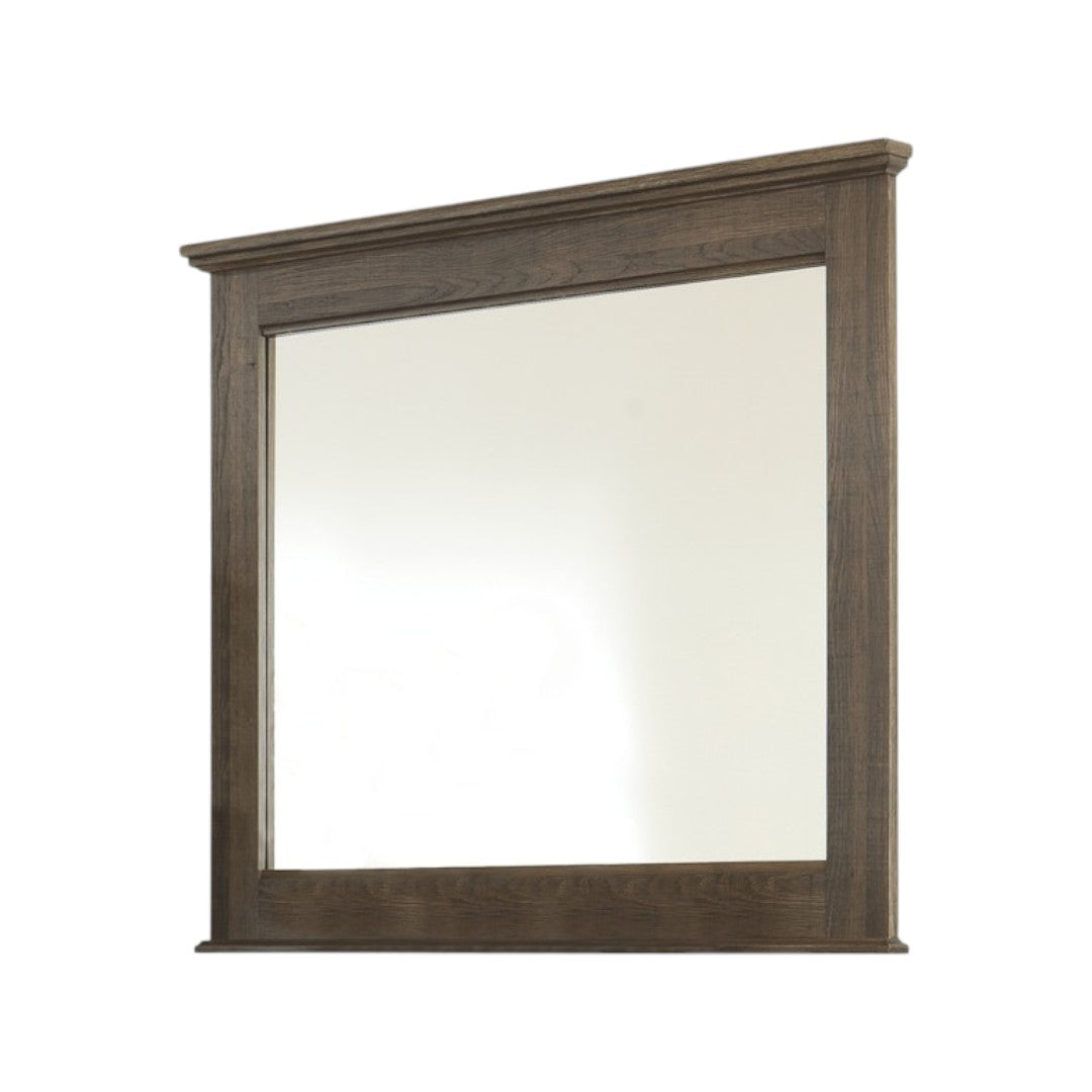 Get the look of posh barn wood without setting foot in a salvage yard. Replicated rough-sawn oak of this dresser and mirror set has a vintage finish that is reminiscent of a timeworn family heirloom. Warm, rustic and naturally beautiful, it’s just got that ageless appeal. Sleek, mod pulls in a pewter tone are a snappy finishing touch.